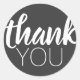 The design features the words 'thank you' in modern script typography against a dark grey/ black background