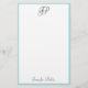 Modern Simple Template Handwritten Monogram Name Personalised Blue Green White Stationery Paper.