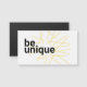 Graphic design of a saying "Be Unique" with lines in yellow and black colours. Urban typography.