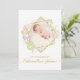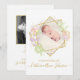 Birth announcement for a little girl has delicate watercolor flowers and golden accents. Add two photos and personalise on front and back.