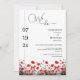 This modern wedding invitation, features a Chinese ink painting of red poppies wildflowers, flower garden, in red and black with an elegant white backing.