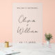 Wedding welcome sign with simple design and modern minimalist script calligraphy.