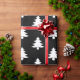 Modern Simple White Christmas Trees on Black Wrapping Paper