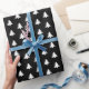 Modern Simple White Christmas Trees on Black Wrapping Paper