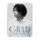 Modern graduation magnet featuring the graduate's vertical photo with "Grad" displayed in blue art deco-style lettering. Personalise the graduation photo magnets by adding the graduate's name, school name, and graduation year.