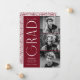 Stylish graduation announcement featuring the graduate's three photos located to the right of the design in a vertical layout. "Grad" is displayed in white, modern art deco lettering with a burgundy background. Personalise the modern photo graduation announcement by adding the graduate's name, graduation year, and school name. The design reverses to display a burgundy and white geometric swirl background. Perfect for both high school and college graduations!