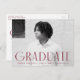 Simple graduation party invitation postcard featuring the graduate's horizontal photo with "Graduate" displayed in burgundy, modern art deco lettering. Personalize the front of the photo graduation party invite by adding the graduate's name, school, and grad year. The postcard reverses to display your return address and graduation party details. The postcard invite is perfect for both high school and college graduates!