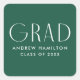 Modern graduation stickers featuring "Grad" displayed in white art deco-style lettering with a green background or color of your choice. Personalize the simple graduation stickers by adding the graduate's name and graduation year. The personalized graduation stickers are perfect for sealing envelopes, graduation favor bags, etc.