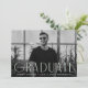 Simple graduation party invites featuring the graduate's horizontal photo with "Graduate" displayed in mint green, modern art deco lettering. Personalise the front of the photo graduation party invite by adding the graduate's name, school, and grad year. The invite reverses to display your party details with a mint green and white geometric swirl background.