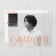 Simple graduation party invitation postcard featuring the graduate's horizontal photo with "Graduate" displayed in orange, modern art deco lettering. Personalise the front of the photo graduation party invite by adding the graduate's name, school, and grad year. The postcard reverses to display your return address and graduation party details. The postcard invite is perfect for both high school and college graduates!