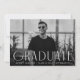 Simple graduation announcement featuring the graduate's horizontal photo with "Graduate" displayed in white, modern art deco lettering. Personalise the front of the single photo graduation announcement by adding the graduate's name, school, and grad year. The announcement reverses to display a black and white geometric swirl design.