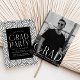 Celebrate the graduate with these stylish graduation party invitations featuring a vertical photo of the graduate and "Grad" in white, modern art deco lettering. Personalise the front with the graduate's name, school, and graduation year for a custom touch. The back of the invite showcases your party details against a chic black and white geometric swirl background, creating a sophisticated design perfect for any high school or college graduate. These minimalist yet elegant invites are the perfect way to announce your graduate’s special day.