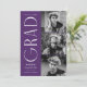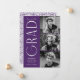 Stylish graduation announcement featuring the graduate's three photos located to the right of the design in a vertical layout. "Grad" is displayed in white, modern art deco lettering with a purple background. Personalize the modern photo graduation announcement by adding the graduate's name, graduation year, and school name. The design reverses to display a purple and white geometric swirl background. Perfect for both high school and college graduations!
