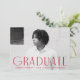 Simple graduation party invites featuring the graduate's horizontal photo with "Graduate" displayed in red, modern art deco lettering. Personalise the front of the photo graduation party invite by adding the graduate's name, school, and grad year. The invite reverses to display your party details with a red and white geometric swirl background.