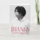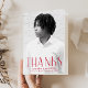 Simple graduation thank you card featuring the graduate's vertical photo with "Thanks" displayed in red, modern art deco lettering. Personalise the front of the photo graduation thank you card by adding the graduate's name, school name, and graduation year. The inside of the card features space for your custom thank you message in red lettering or leave it blank to write your own!