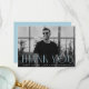 Simple graduation thank you card featuring the graduate's horizontal photo with "Thank You" displayed in sky blue, modern art deco lettering. Personalise the front of the photo graduation thank you card by adding the graduate's name, school name, and graduation year. The card reverses to display your custom thank you message in black lettering or leave the back blank to handwrite your own!