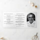 Elegant trifold funeral or memorial service program with a single photo and a classic black and white design offers a timeless way to honour your loved one’s life and legacy. The front cover features a large arch-shaped photo followed by the editable heading "A Celebration of Life," with name and dates beautifully displayed in script and serif fonts. The rest of the layout provides ample space for a detailed obituary, order of service, meaningful poem or prayer, acknowledgements, personal touches such as quotes, memories, or a life timeline, or any other text of your choice. Clean typography and a structured layout ensure readability and grace, making it ideal for traditional memorials, celebrations of life, or religious services.