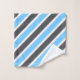 These bath towels feature a beautiful diagonal striped pattern in sky blue, dark grey, and white.