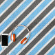 This beach towel features a beautiful diagonal striped pattern in sky blue, dark grey, and white.