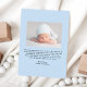 Announce your baby's arrival with this modern and minimalist birth announcement card, featuring your baby's vertical photo showcased in a charming wavy frame on a light blue background. Below the photo, easily personalise the design with your baby's name and birth stats in clean, elegant fonts. The back of the card includes a horizontal photo with space for your custom message — perfect for sharing a sweet note with friends and family. This simple yet stylish birth announcement blends contemporary design with a touch of retro flair and is ideal for gender-neutral baby announcements.