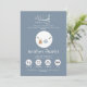 Celebrate the arrival and Aqiqah of your little one with this elegant slate blue invitation. Featuring a minimalist design with earthy tones, a cute baby romper illustration, and birth detail icons. Fully personalizable for your baby boy's special day.