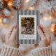 Modern Slate Grey Pinstripe Christmas Family Photo Holiday Card