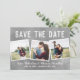 Share your news with this chic save the date card featuring three snapshot photos and a textured grey background.