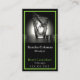 Sleek modern vertical business card design features single glass with spotlight black and white photo with neon green border . Perfect selection for bartenders, mobile mixologists and anyone else associated with the adult drink industry. Add your custom QR code for your social media profile or website calendar of events to stay connected with guests and future customers.