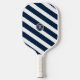 Modern Sleek Nautical Navy Blue and White Striped Pickleball Paddle