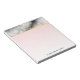 A notepad with an elegant and modern marbled pattern. White, black and smoky grey marble with thin ribbons of faux-gold swirls throughout the pattern. A light pink gradient background beneath the marbled pattern.