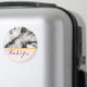 Thank you magnet with an elegant and modern marbled pattern. White, black and smoky grey marble with thin ribbons of faux-gold swirls throughout the pattern. A light pink gradient background beneath the marbled pattern.