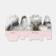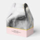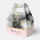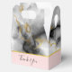 Wedding thank you favro boxes with an elegant and modern marbled pattern. White, black and smoky grey marble with thin ribbons of faux-gold swirls throughout the pattern. A light pink gradient background beneath the marbled pattern, with your Thank You on the front and personalised text on the back.
