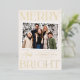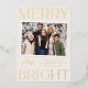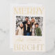 Modern holiday photo card featuring your horizontal photo bordered in a white instant photo frame. The phrase "Merry and Bright" is displayed in gold foil lettering with a vanilla cream background. Personalise the front of the foil Christmas card with your custom greeting, family name, and the year in gold foil lettering. The card reverses to a light vanilla cream background with subtle white dots (snow).