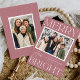 Modern holiday photo card featuring your horizontal photo bordered in a white instant photo frame. The phrase "Merry and Bright" is displayed in white lettering with a festive dusty rose background. Personalise the front of the snapshot holiday card with your custom greeting, family name, and year. The card reverses to an additional photo and a dusty rose background with subtle white dots (snow).