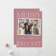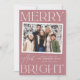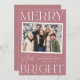 Modern Snapshot Dusty Rose Merry and Bright Photo Holiday Card