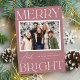 Modern Snapshot Dusty Rose Merry and Bright Photo Holiday Card