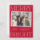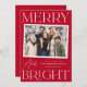 Modern Snapshot Red Merry and Bright Photo Holiday Card