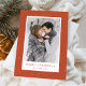 Celebrate the season with these elegant holiday cards showcasing your photo framed in white with snow flurries against a warm rust background. The back of the card provides space for two additional photos and a custom message. Personalise the design with your own holiday greeting to create a unique and festive card to share with loved ones.