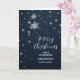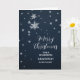 Merry Christmas for grandson and her family card with modern snowflakes pattern on a navy blue sky.
