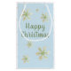 Modern Snowflake Blue Script Happy Christmas Small Gift Bag