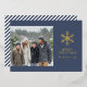 Send warm holiday wishes with this elegant modern Christmas card featuring a large gold snowflake and the greeting “Merry Christmas” beside a customizable family photo. The classic navy background with diagonal stripe accents creates a timeless and sophisticated look. Personalize with your family name and year to make it uniquely yours. Perfect for sharing festive joy and style this holiday season. Designed with a luxurious foil finish for a subtle shimmer that enhances your message of warmth and cheer.