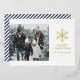 Send warm holiday wishes with this elegant modern Christmas card featuring a large gold snowflake and the greeting “Merry Christmas” beside a customizable family photo. The classic navy background with diagonal stripe accents creates a timeless and sophisticated look. Personalize with your family name and year to make it uniquely yours. Perfect for sharing festive joy and style this holiday season. Designed with a luxurious foil finish for a subtle shimmer that enhances your message of warmth and cheer.