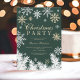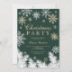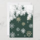A modern winter Holiday Christmas gold glitter, silver and white snowflakes illustration on editable forest green background, all the illustrations colour are editable to match your own colour palette with white pine tree branches on forest green background with an elegant script typography.