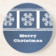 Dazzling and stylish Modern Snowflakes Coaster in royal blue featuring a trio of snowflakes, a polka dot border, and a metallic look background. This elegant and seasonal winter themed sandstone coaster will add holiday flair to any decor while protecting your furniture. Customise this design with your own text.