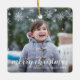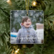Add a memory to your tree with this modern and cute keepsake ceramic ornament featuring a simple design with the greeting, "merry christmas" in white script typography and snowflakes over your favourite photo. Use the template to add the name and age of your child along with the year. Add the same photo to both sides or