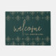 Perfect for the holidays or winter time, this cute doormat features "welcome" in modern handwritten script, with a top and bottom border of geometric snowflakes. Personalise with your family name.