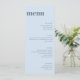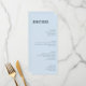 This wedding menu in soft blue features clean typography and a neutral color palette that works with many wedding themes. Personalize the menu items to match your reception meal and course selections. A simple, stylish option for wedding table settings and place settings. Designed to coordinate easily with modern and minimalist wedding decor.