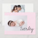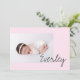 Celebrate the arrival of your little one with this soft and elegant photo birth announcement card. Designed with a gentle pink frame and modern handwritten script this layout highlights your newborn’s photo while keeping the look clean timeless and heartfelt. Easily personalize with baby name birth date weight length and parent names to create a meaningful keepsake for family and friends. Perfect for mailing or sharing as a cherished newborn announcement this design pairs beautifully with professional photography and everyday snapshots alike. A second photo is available to customize on the back as well.