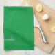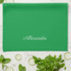 Modern Bright Green Solid coloured background. TEMPLATE for the name in White script. A Modern kitchen towel featuring an easy-to-personalise template, for the perfect custom kitchen.