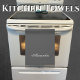 Solid coloured background. TEMPLATE for the name in Black script. A Modern kitchen apron featuring an easy-to-personalise template, for the perfect custom kitchen.